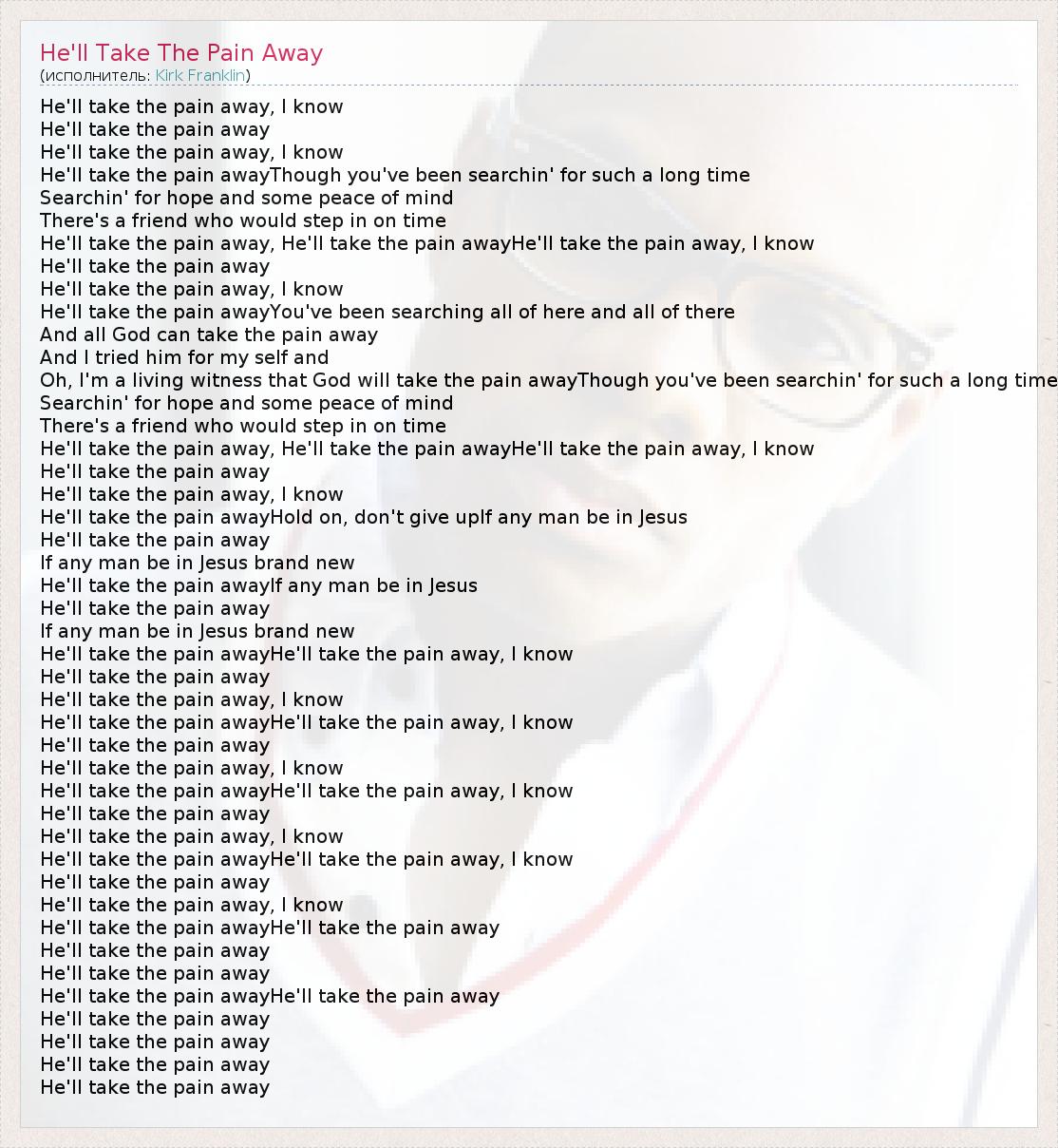 ГлавнаяИсполнителиKirk FranklinHe'll Take The Pain Away