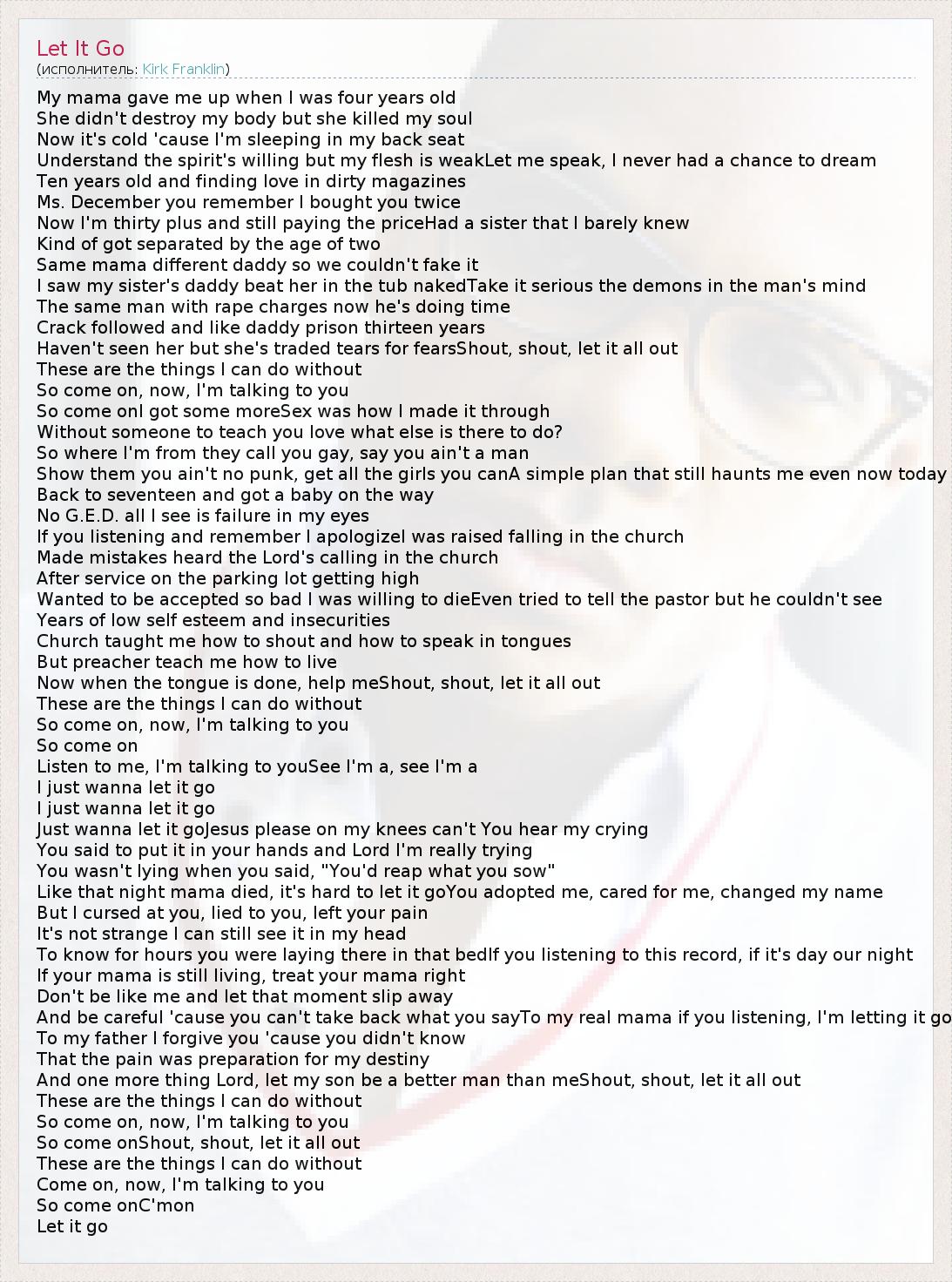 And one more thing Lord, let my son be a better man than meShout, shout, let it all out