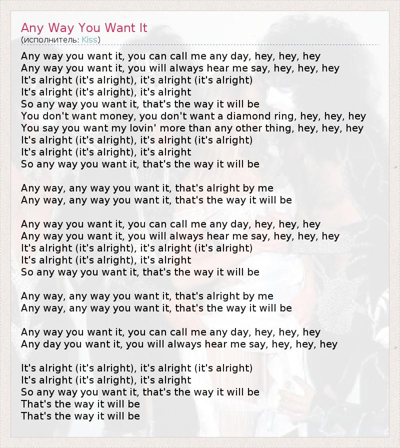 ГлавнаяИсполнителиKissAny Way You Want It