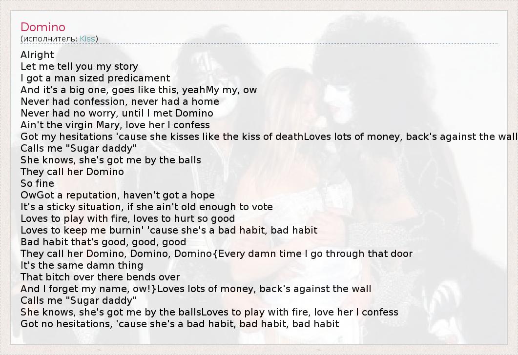 They call her Domino, Domino, Domino{Every damn time I go through that door