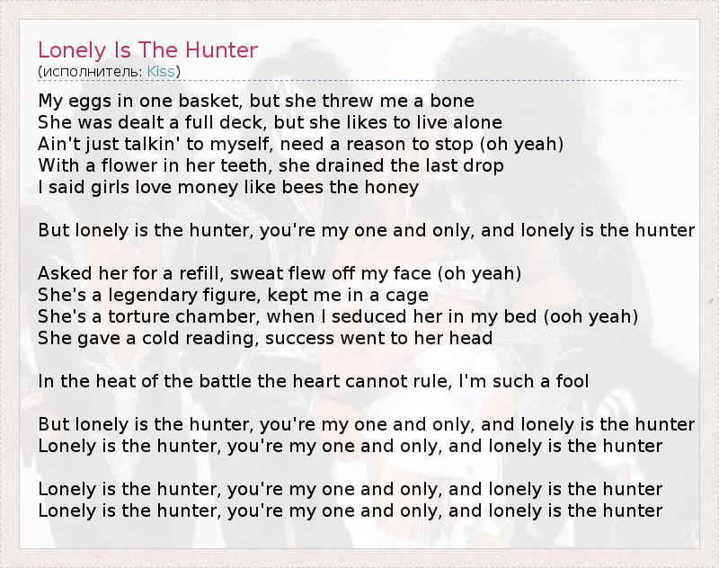 But lonely is the hunter, you're my one and only, and lonely is the hunter