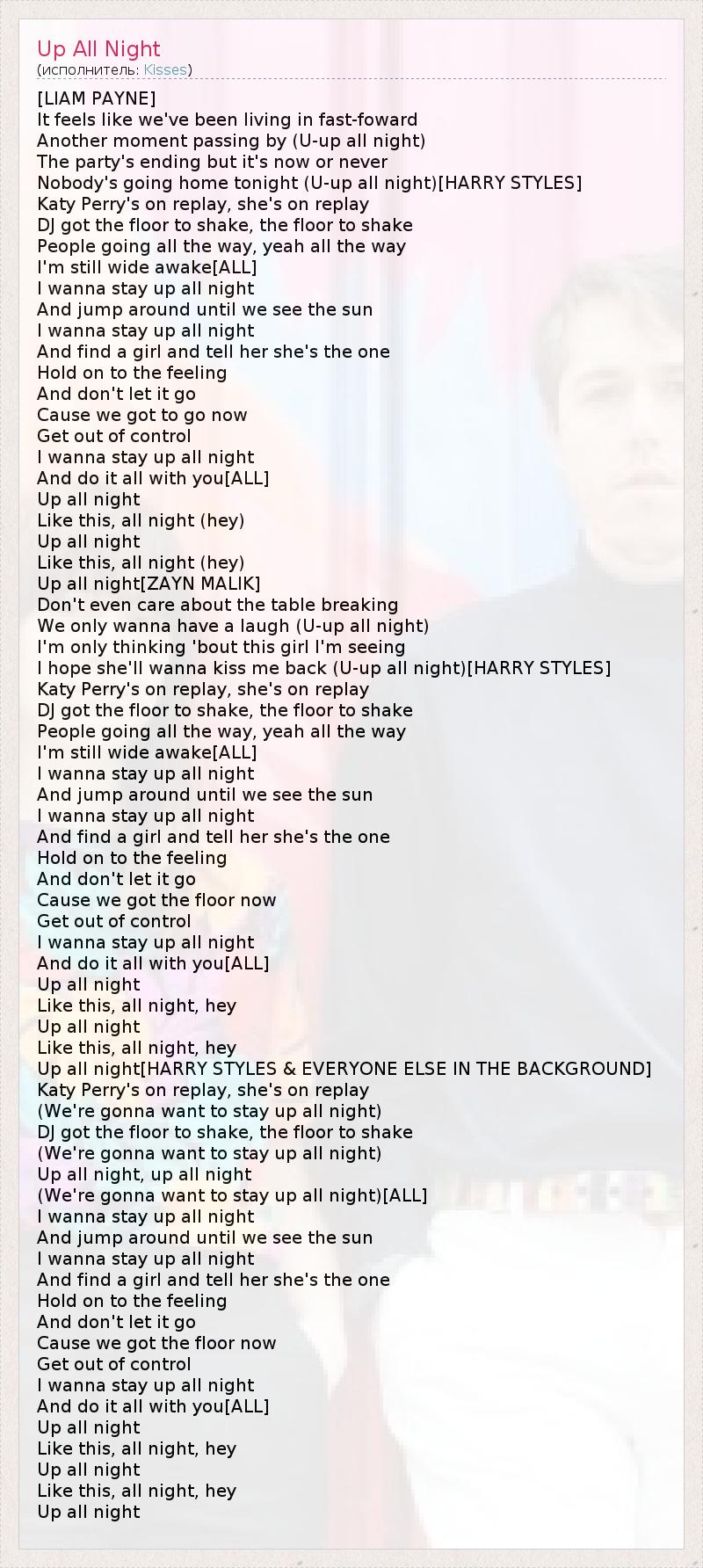 А как ты думаешь, о чем песня "Up All Night" ?