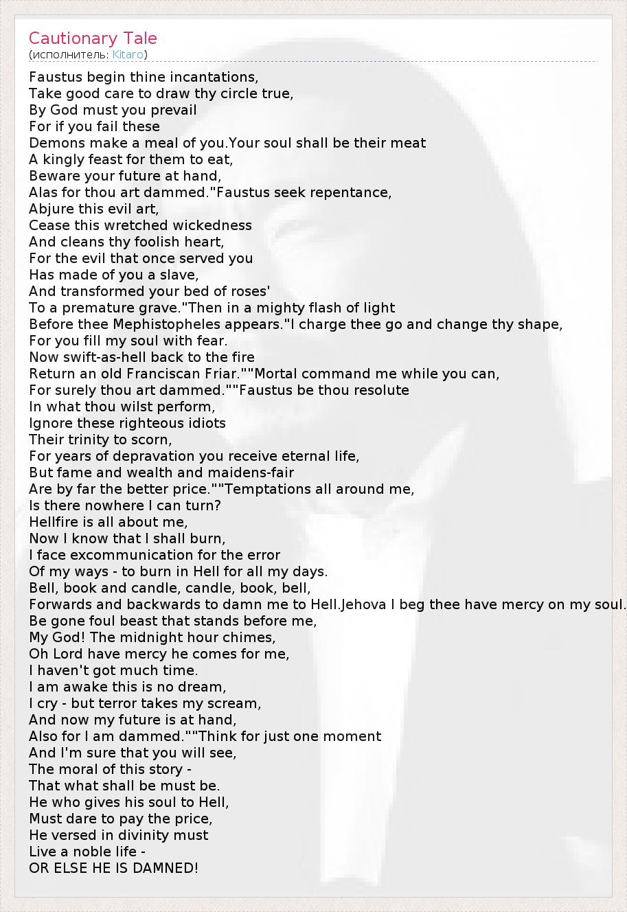 For surely thou art dammed.""Faustus be thou resolute