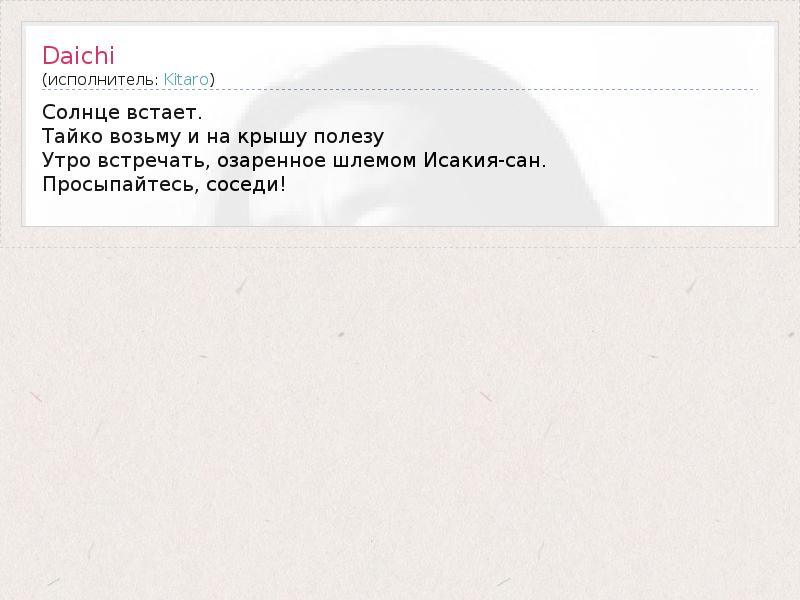 А как ты думаешь, о чем песня "Daichi" ?