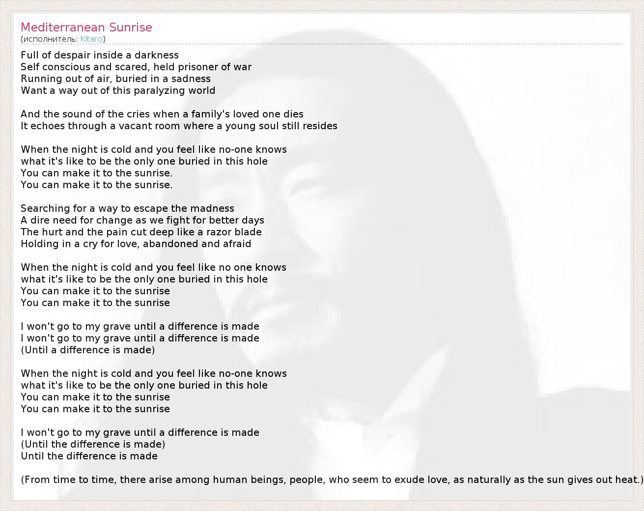 А как ты думаешь, о чем песня "Mediterranean Sunrise" ?