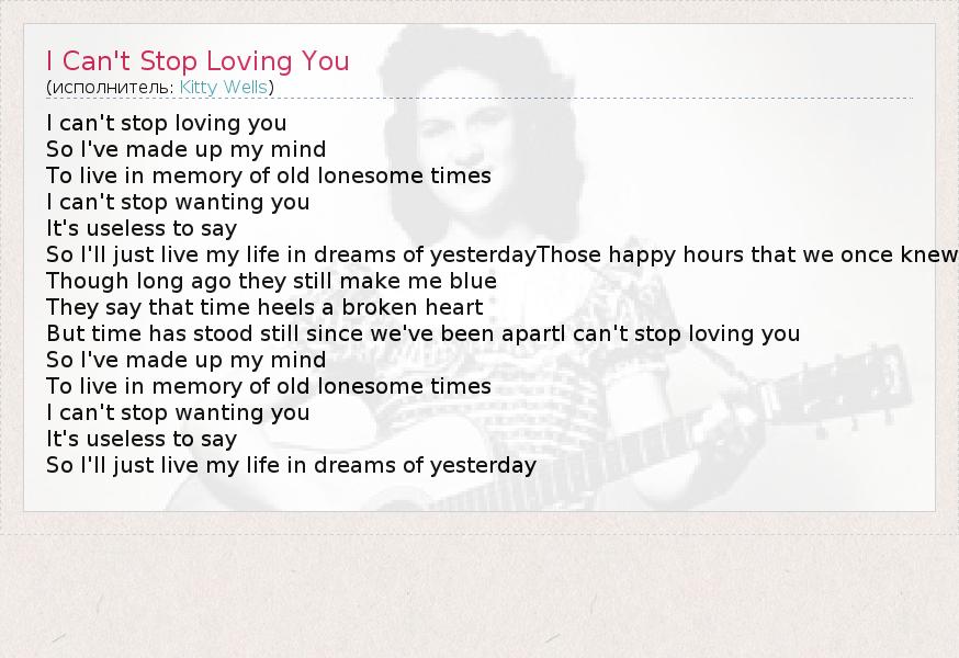 ГлавнаяИсполнителиKitty WellsI Can't Stop Loving You