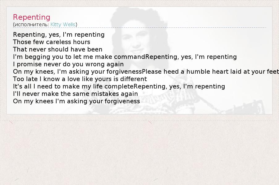 Repenting, yes, I'm repenting