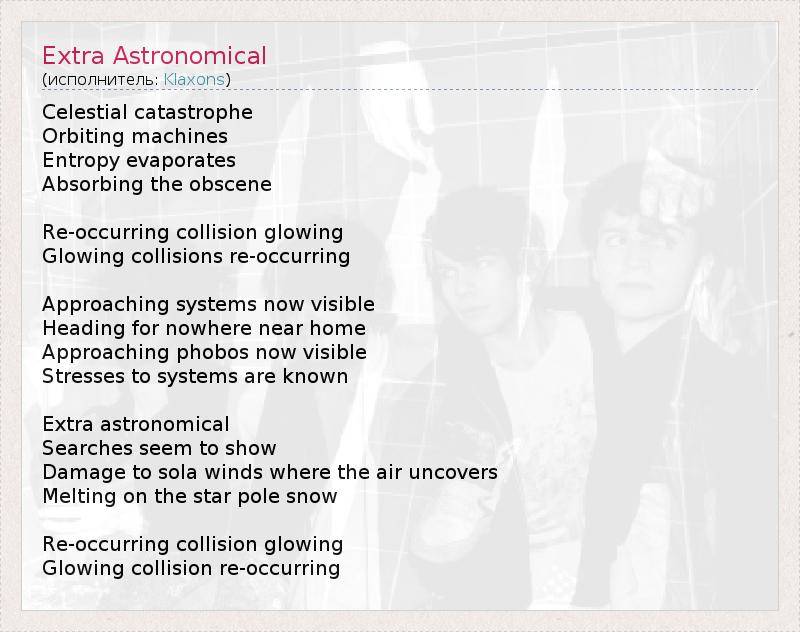А как ты думаешь, о чем песня "Extra Astronomical" ?