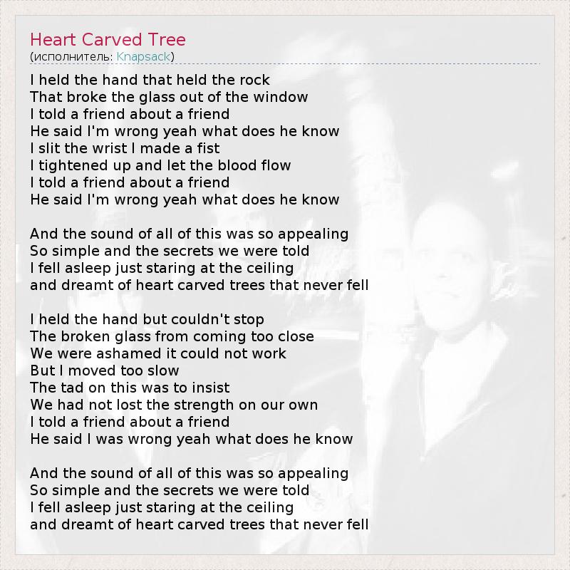 А как ты думаешь, о чем песня "Heart Carved Tree" ?