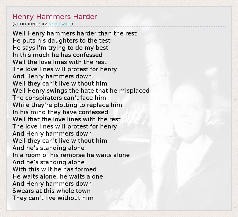А как ты думаешь, о чем песня "Henry Hammers Harder" ?