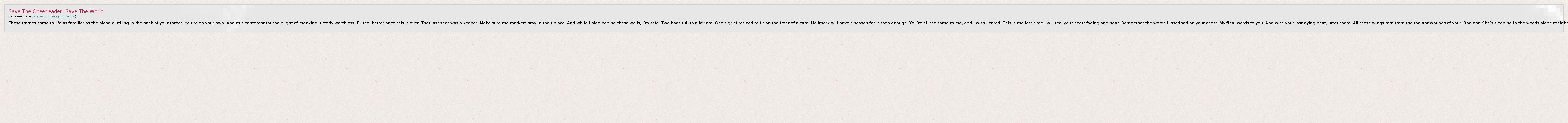 А как ты думаешь, о чем песня "Save The Cheerleader, Save The World" ?