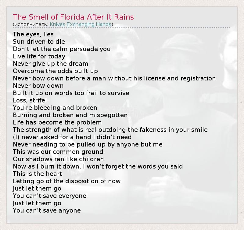 А как ты думаешь, о чем песня "The Smell of Florida After It Rains" ?