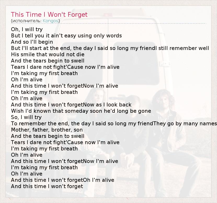 А как ты думаешь, о чем песня "This Time I Won't Forget" ?