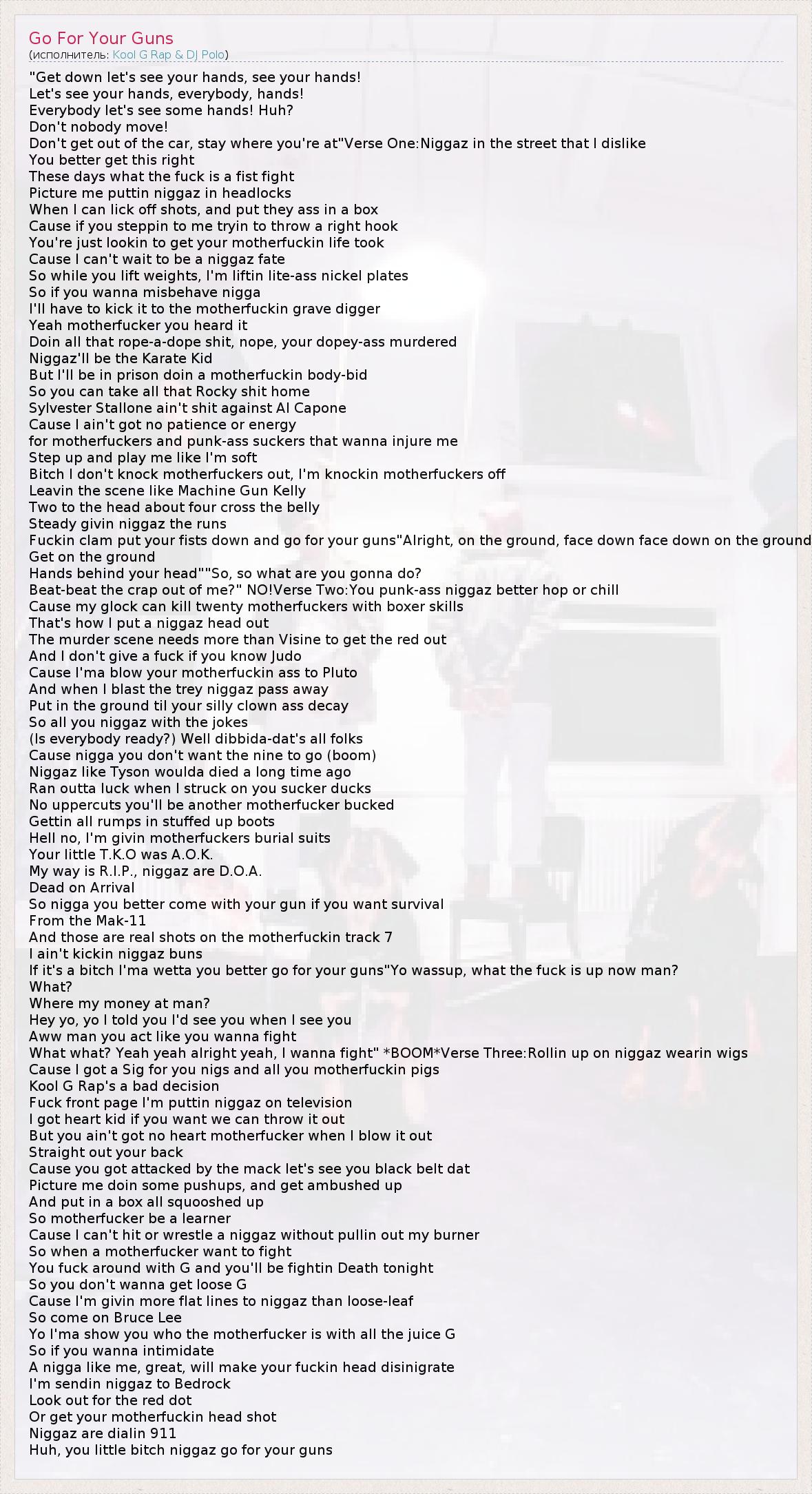 So nigga you better come with your gun if you want survival
