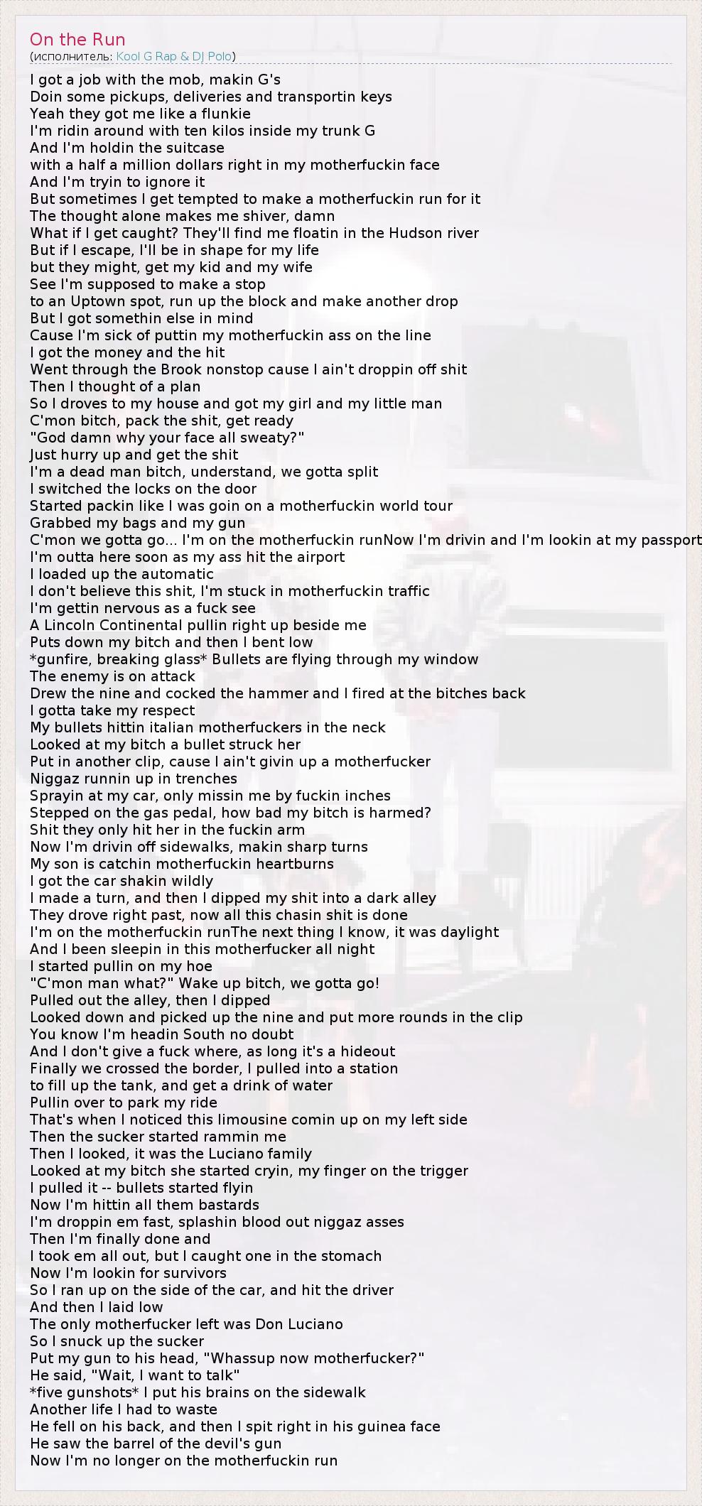 C'mon we gotta go... I'm on the motherfuckin runNow I'm drivin and I'm lookin at my passport