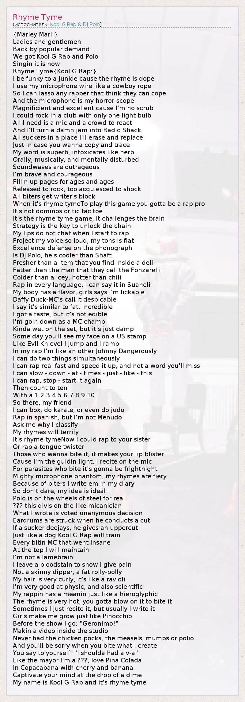 А как ты думаешь, о чем песня "Rhyme Tyme" ?
