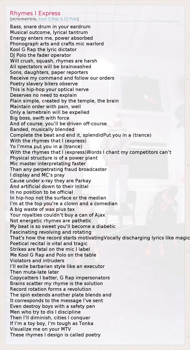 А как ты думаешь, о чем песня "Rhymes I Express" ?