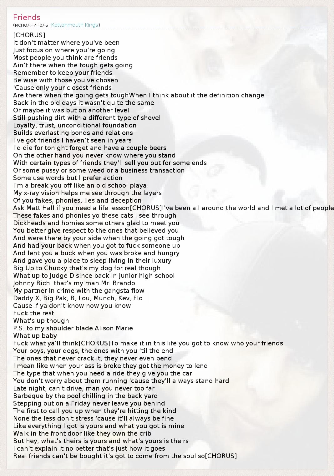 Fuck what ya'll think[CHORUS]To make it in this life you got to know who your friends
