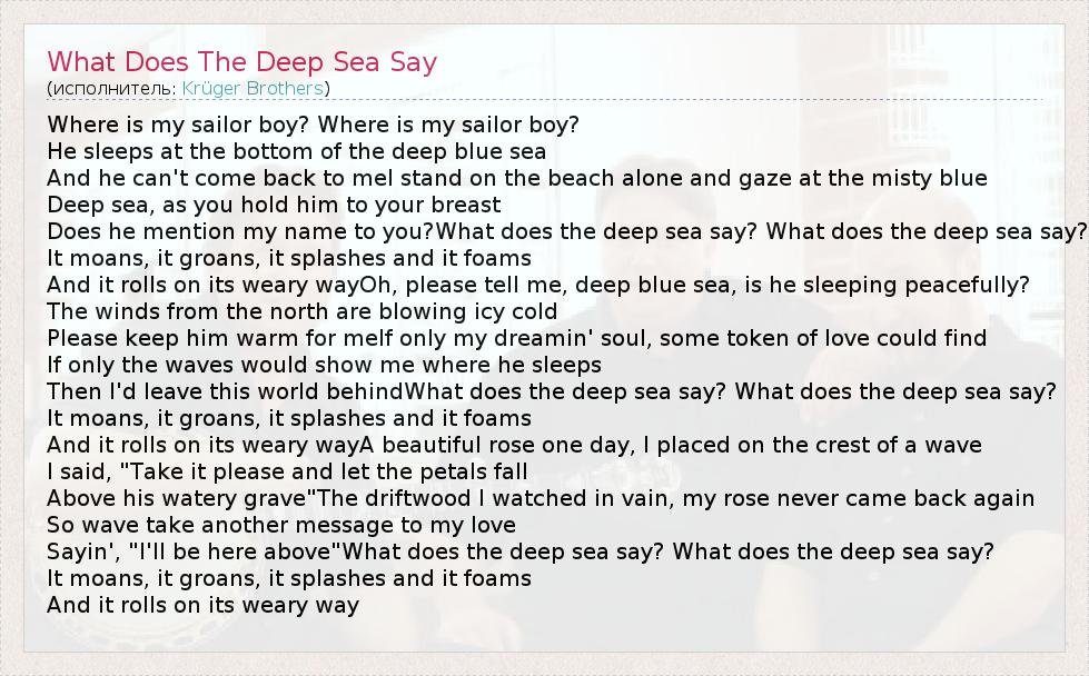 А как ты думаешь, о чем песня "What Does The Deep Sea Say" ?