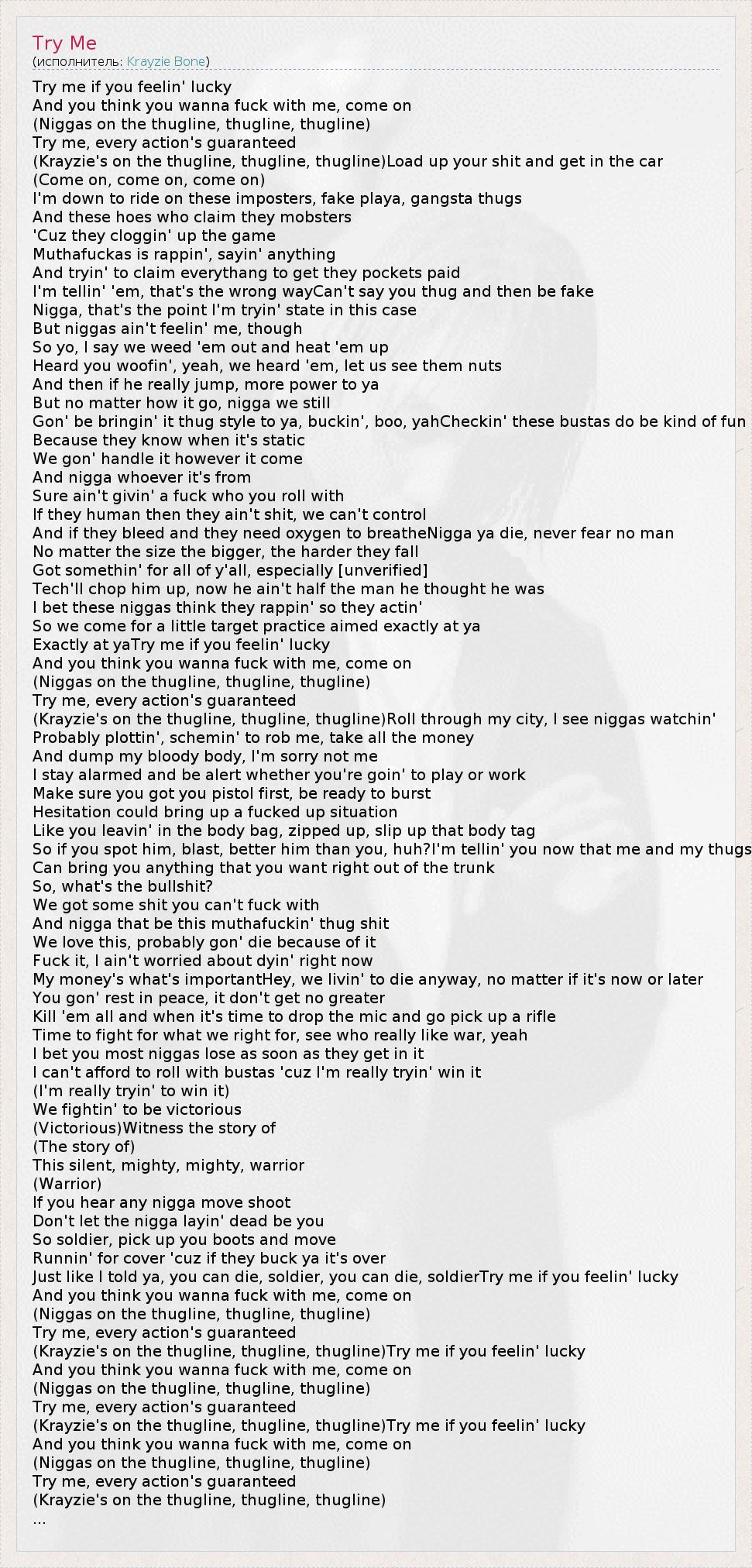 (Krayzie's on the thugline, thugline, thugline)Try me if you feelin' lucky