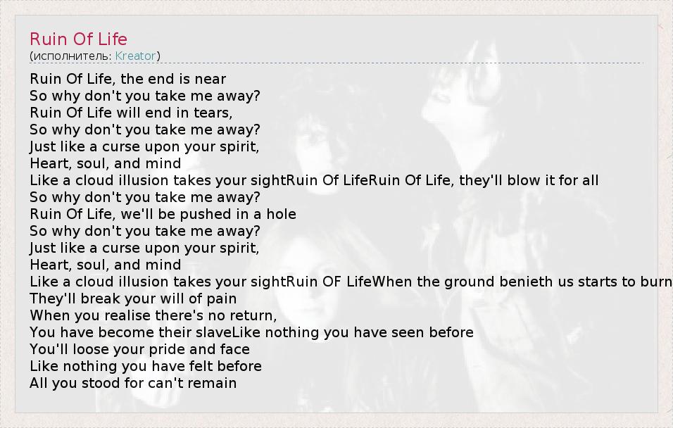 А как ты думаешь, о чем песня "Ruin Of Life" ?