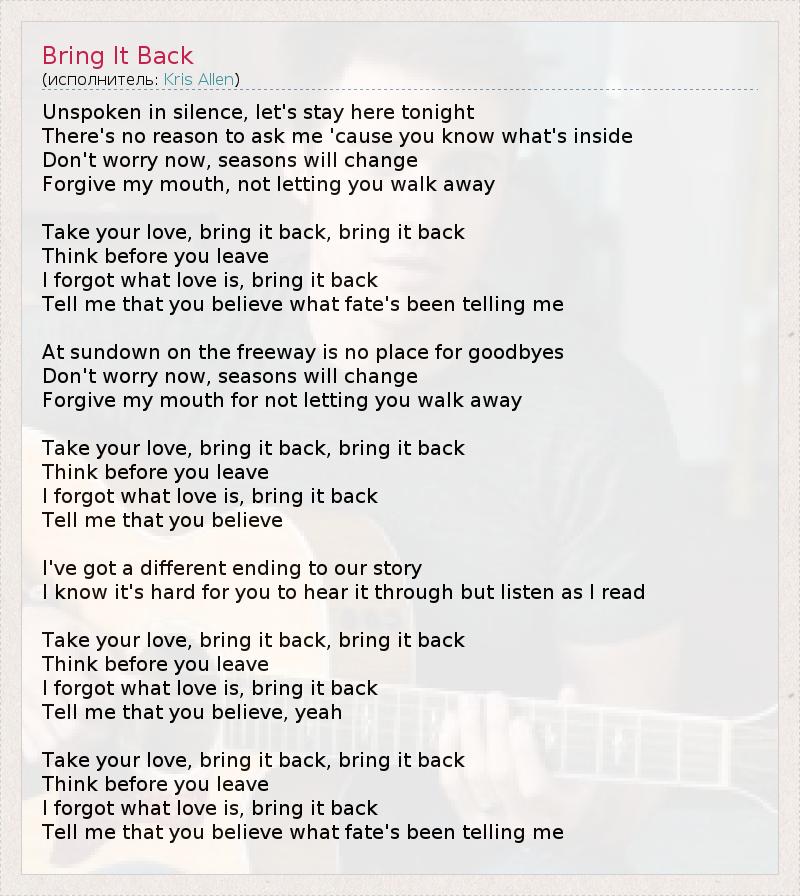 А как ты думаешь, о чем песня "Bring It Back" ?
