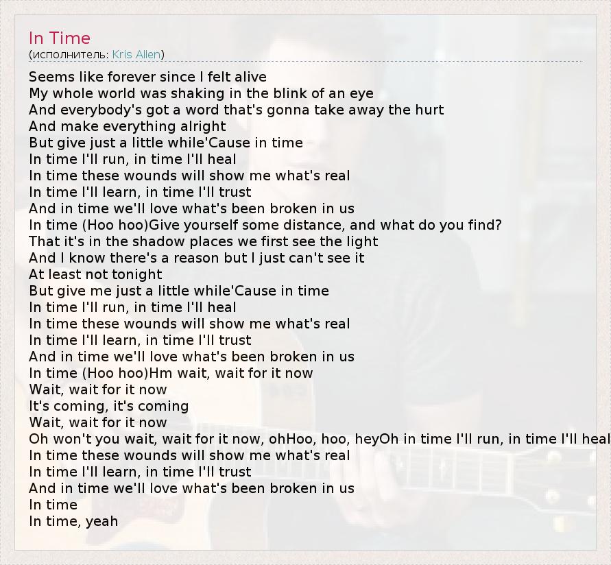 Oh won't you wait, wait for it now, ohHoo, hoo, heyOh in time I'll run, in time I'll heal