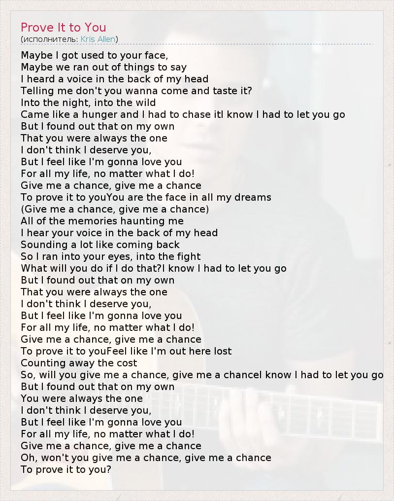 А как ты думаешь, о чем песня "Prove It to You" ?