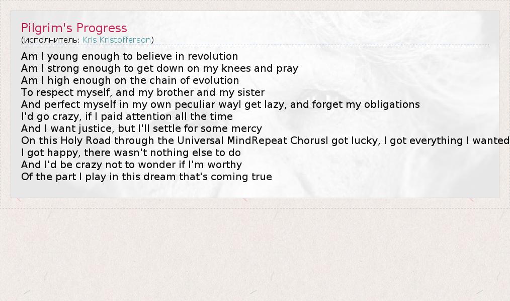 А как ты думаешь, о чем песня "Pilgrim's Progress" ?