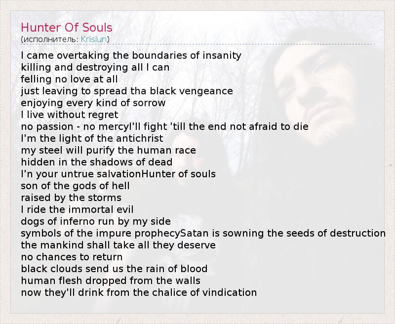 А как ты думаешь, о чем песня "Hunter Of Souls" ?
