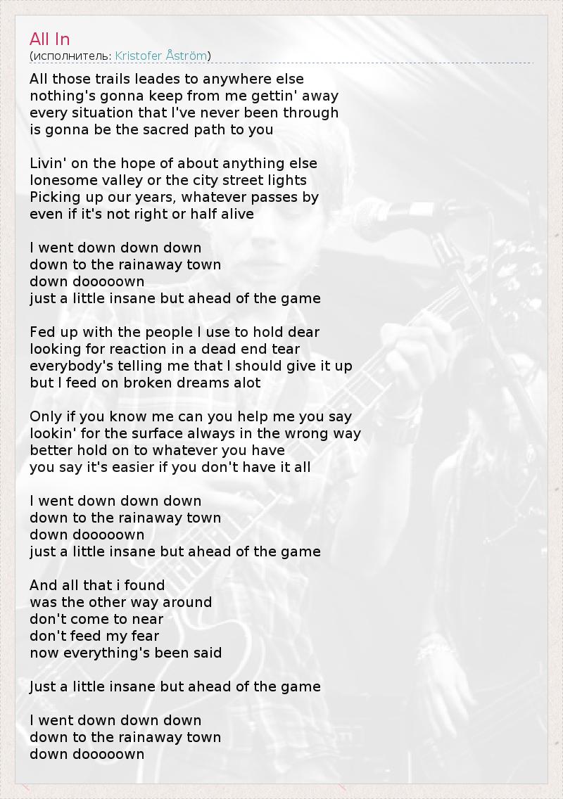 А как ты думаешь, о чем песня "All In" ?