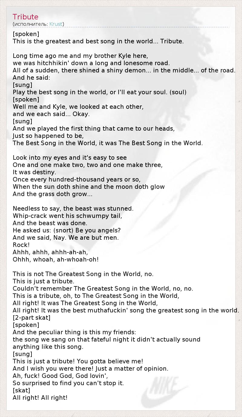 Всё в порядке! Это была лучшая хренова песня, самая великая песня в мире.