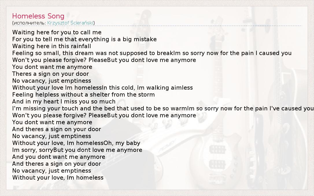 А как ты думаешь, о чем песня "Homeless Song" ?