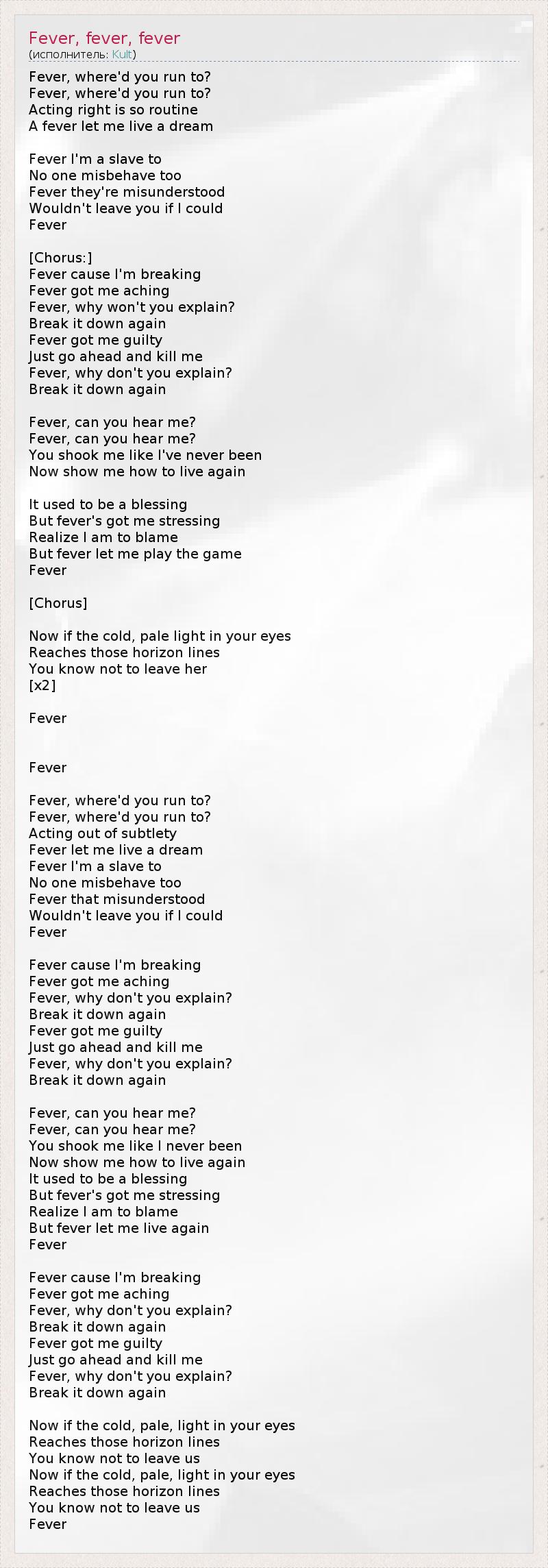 А как ты думаешь, о чем песня "Fever, fever, fever" ?