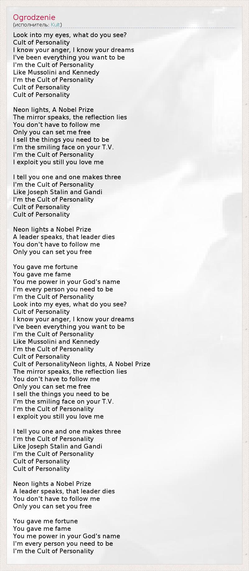 Это интересно:1. Kult (Poland)Группа Kult была образована в 1982 году из предыдущей группы Казика Сташевски - Novelty Poland.В июле 1982 года группа выступила на своем первом концерте в клубе "Ремонт" в Варшаве.Основу музыки Kult составляет панк, а так же элементы рока, ска, джаза, традиционной баллады и регги. С самого начала группа была мгновенно узнаваемой звуком, голосом и провокационными текстами вокалиста... продолжение
