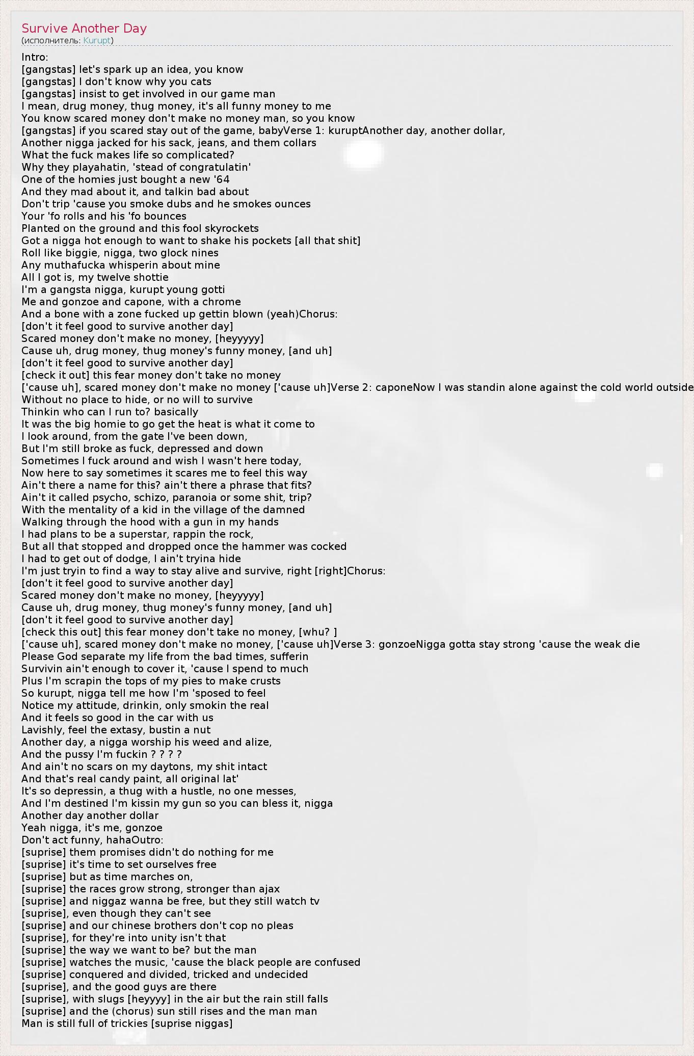 [gangstas] if you scared stay out of the game, babyVerse 1: kuruptAnother day, another dollar,