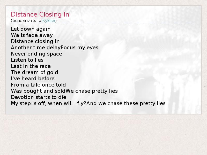 А как ты думаешь, о чем песня "Distance Closing In" ?
