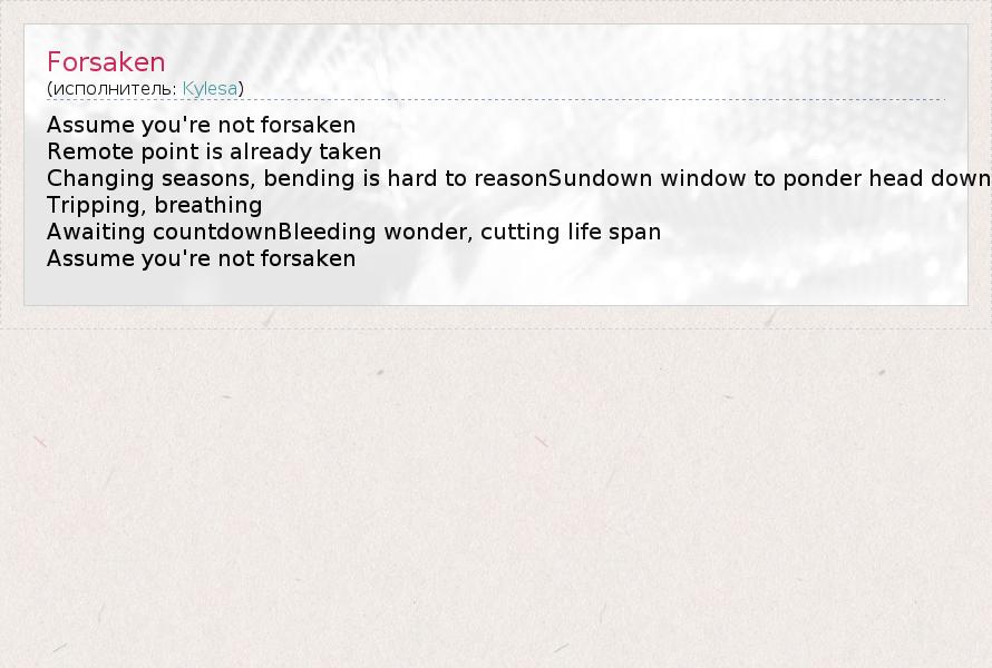 А как ты думаешь, о чем песня "Forsaken" ?