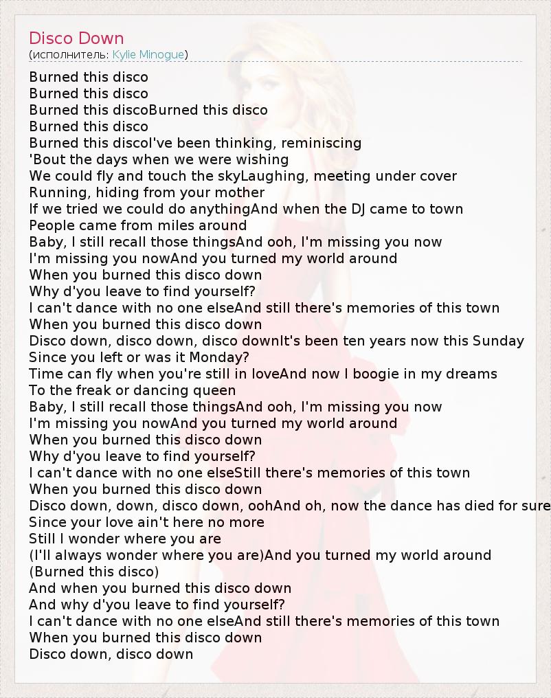 Disco down, down, disco down, oohAnd oh, now the dance has died for sure