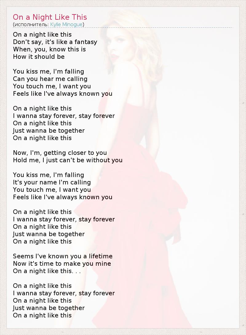 А как ты думаешь, о чем песня "On a Night Like This" ?