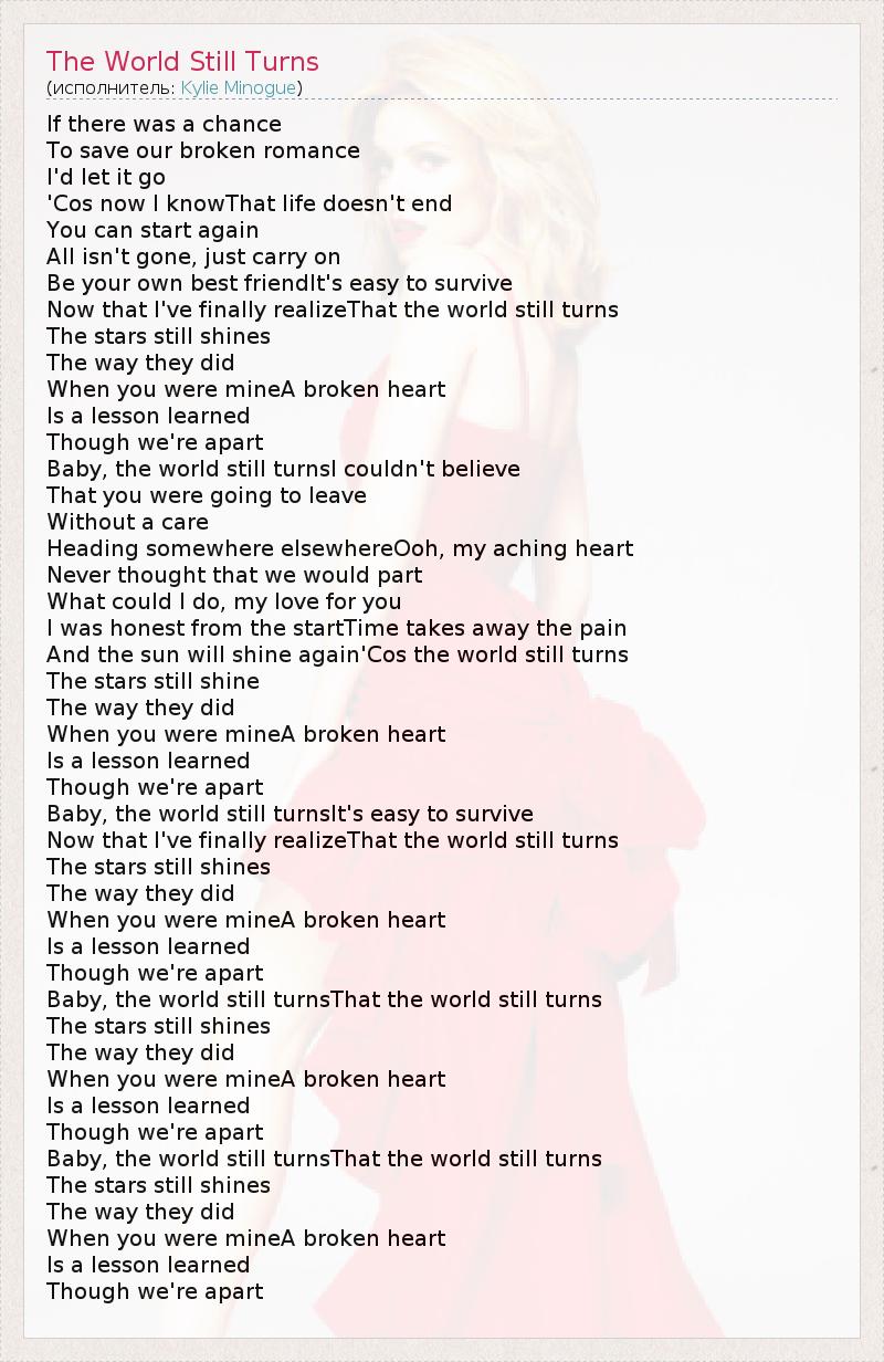 Baby, the world still turnsI couldn't believe
