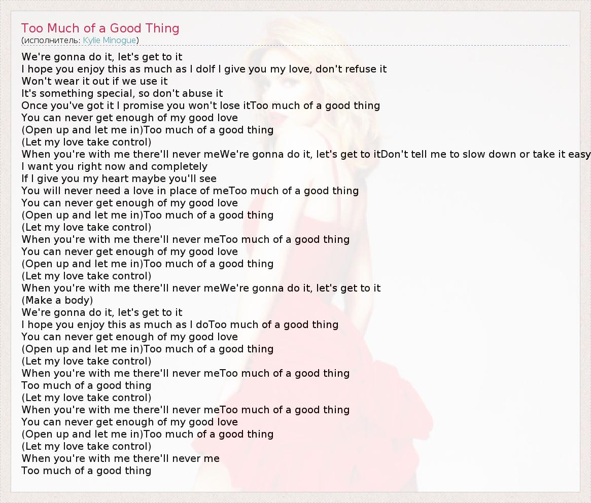 А как ты думаешь, о чем песня "Too Much of a Good Thing" ?