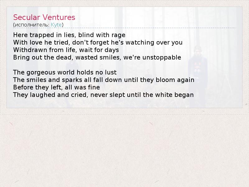 А как ты думаешь, о чем песня "Secular Ventures" ?