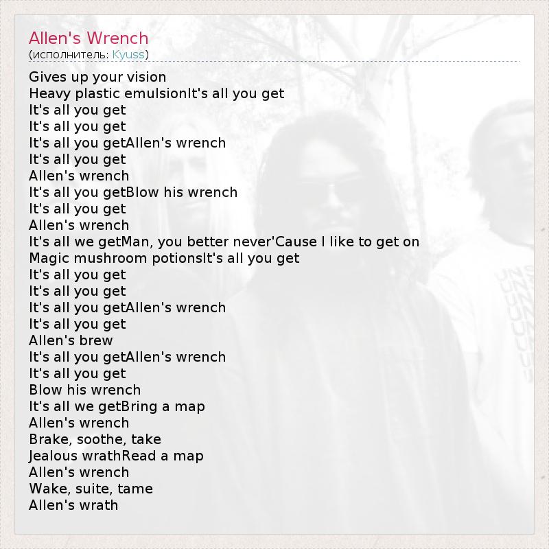 А как ты думаешь, о чем песня "Allen's Wrench" ?