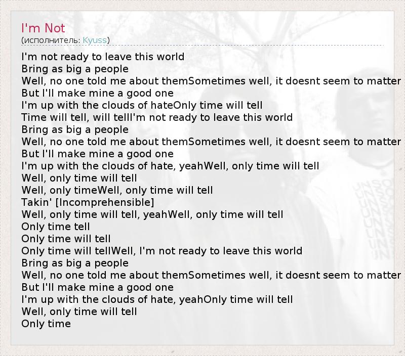 Time will tell, will tellI'm not ready to leave this world