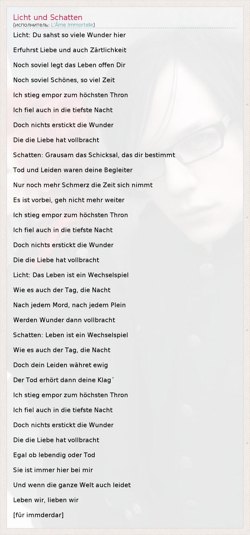 А как ты думаешь, о чем песня "Licht und Schatten" ?