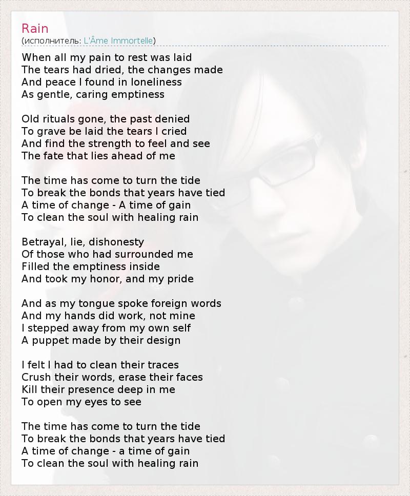 Это интересно:L'Âme Immortelle (фр. бессмертная душа) — австрийская группа, совмещающая в своей музыке электронику и готику. Ранние записи группы тяготели к электронным жанрам EBM и darkwave, на поздних же звучание сместилось в сторону тяжёлого немецкого индастриала (Neue Deutsche Härte).Так же, как и у многих других групп, биография L'Âme Immortelle началась с вечеринки с большим количеством алкоголя. Там познакомились... продолжение