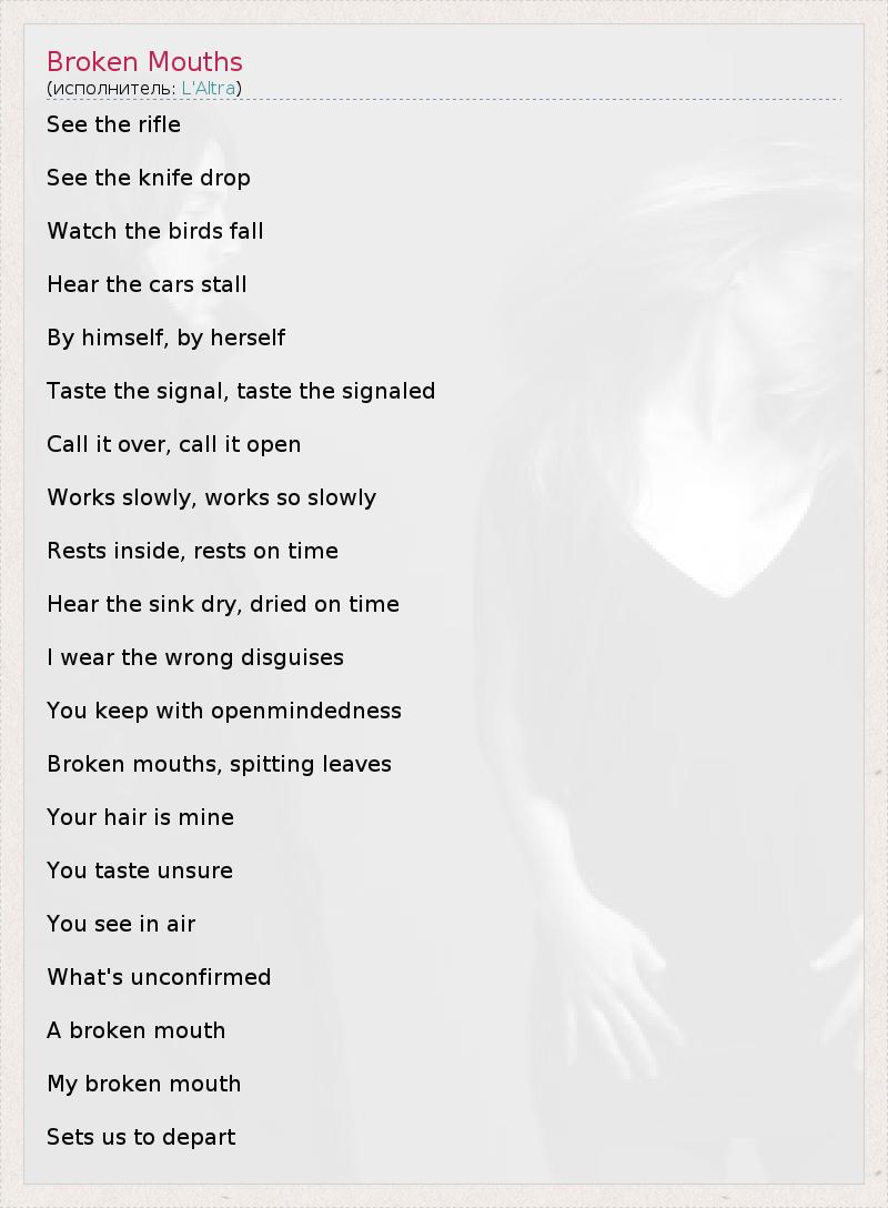 А как ты думаешь, о чем песня "Broken Mouths" ?