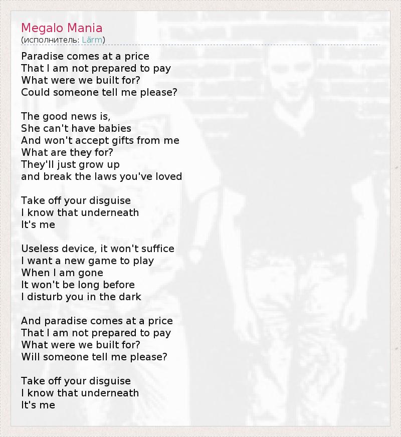 А как ты думаешь, о чем песня "Megalo Mania" ?