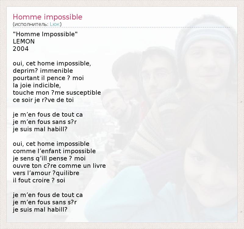 А как ты думаешь, о чем песня "Homme impossible" ?